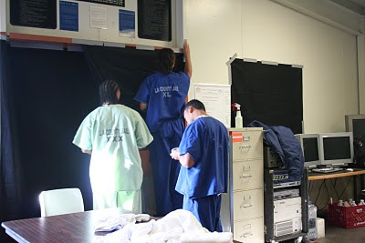 If you’re new to this blog, ABOVE THE LINE is an interview show produced at the end of each semester by Hollywood Impact Graduates. This is where our instructors and students trade places. The students, create the set, run the cameras, and adjust the lights as instructors give them one on one, hands-on guidance. Below, Gaffer Daz Reynolds instructs students on lighting.